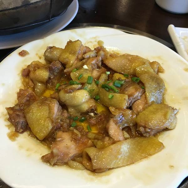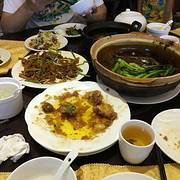 这家餐厅应该算是比较正宗的吃广东菜的餐厅了,里面的很多菜都很地道,特别是一些顺德的几个菜。进门的地方还有电视在放《舌尖上的中国》介绍顺德菜的那一集,所以一看气势好像还不错的样子。 如果你是晚饭饭点的时间去吃的话,估计还会排队等号,有时候等的时间还真不短,所以建议大家去的时间最好是赶在吃饭点前一点点,这样就不用排很长的队了。上来的菜分量有点足,如果胃口不大的话,不要点太多,我自己因为吃的比较少,所以很多都吃不完。价格的话,感觉正常消费吧,没有很便宜,也没有感觉特别贵。上面这个菜是鸡肉,很好吃,肉很滑很嫩。粉丝包心菜煲,广东菜的一种做法。广东菜心。吃了满满一桌菜,吃的好撑啊。另外,想说一下,这里的茶也很好喝。