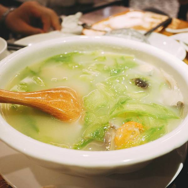 这一大锅毋米粥水实在是大爱,口感细腻润滑,还没放虾滑和白贝,我们就一人一碗喝了起来,据说很美容,等烧开后放入虾滑和白贝,原本没有任何味道的粥水有了鲜味,非常清淡养生。虾滑和白贝煮熟了要赶紧撩出来,免得变老。双皮奶味道还可以,没有吃过顺德正宗的就没法发言权了。啫啫鸡,有点像三杯鸡的味道,很入味,一会就空盘了,空盘之后我们开始吃配菜了,洋葱和大蒜都好吃的不行,是嫩蒜,口感像百合,然后真正意义上的空盘了,配料都吃光。苦瓜汤,估计很多人不敢吃苦瓜,太苦了,到了夏天,苦瓜也是我们这里的家常菜,消暑利器,这家的苦瓜汤,放入了菌类调味,汤味并不苦,苦瓜被切成了薄薄的一大片,厨师刀工真好啊,吃起来也是嫩嫩的,微苦。考验一个好厨师的能力,不仅是复杂的菜做的有多少,反而是最平常的菜能考验出水准,这道每家粤菜馆都有的干炒牛河,恰恰能反正这家店的水准,河粉糯而不烂很有弹性,银牙脆口,牛肉的火候也敲到好处,不过我口味可能有点重,酱味若在浓郁点就好了,不过顺德菜本身就清淡。粤顺餐馆(赞成店)