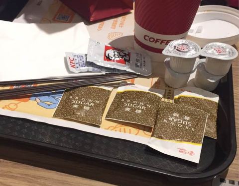 赶高铁的时候,在天城路附近换乘公交,时间充裕之下前往这家肯德基门店去消费了一顿早餐。柜台服务员只有一名小伙子,负责点餐、配餐和打包服务。肯德基的肉酥饭团加豆浆是我早餐的标配,只不过,豆浆的盖子没有完全被盖紧,喝的时候都倒在裤子上了,一阵尴尬。