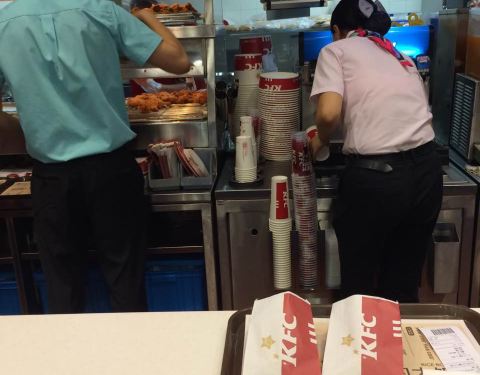 - 肯德基(萧山泰富餐厅):59元套餐比较划算,速度也快,不错不错。乐购楼下,人络绎不绝但排队还好