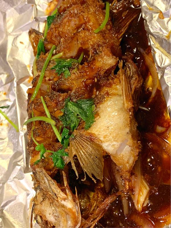 鲈鱼用锡纸包着,比较入味,没有腥味,爱吃鱼星人可以尝试