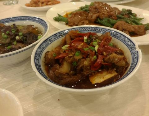 朋友又一次带我们去吃晚饭,我觉得还是不错的!四个人点了几个菜,挺清淡,再喝点黄酒,吃得比较舒服的。香酥鸡、清蒸黄鱼、清油虾(带虾子的)、尖椒牛柳(牛柳很嫩)、青菜芋艿、蒸酱肉,值得推荐。