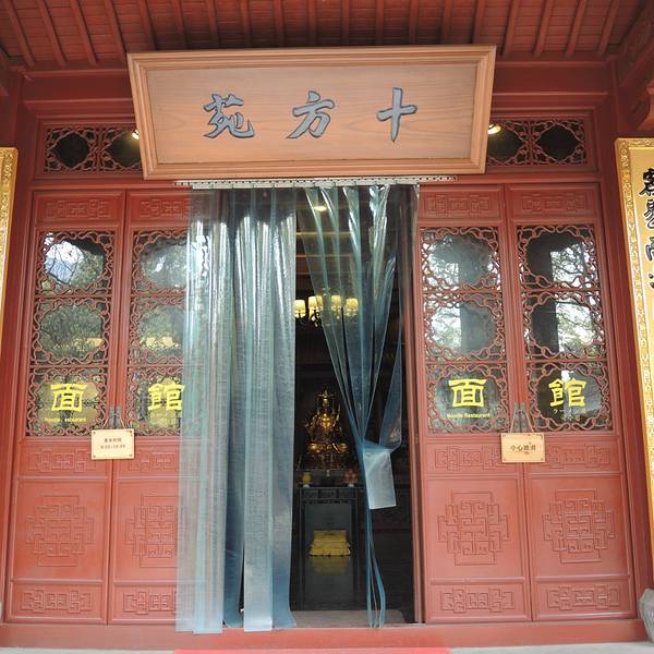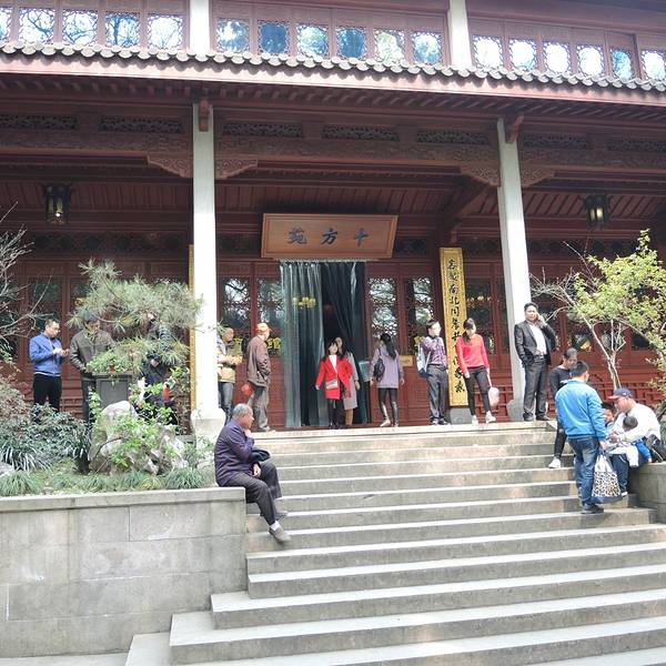 今天的计划就是在灵隐寺游览一天的。中午时分,我们参观完了济公殿出来,看见前面不远处有一座高台阶的两层木制楼房,人来人往,颇为繁忙的样子,就随着人流走过去,到门前抬眼一看,门上的匾额大书三个字:十方...