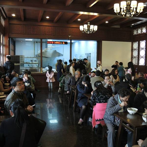 今天的计划就是在灵隐寺游览一天的。中午时分,我们参观完了济公殿出来,看见前面不远处有一座高台阶的两层木制楼房,人来人往,颇为繁忙的样子,就随着人流走过去,到门前抬眼一看,门上的匾额大书三个字:十方苑。原来这就是大名鼎鼎的灵隐寺素面馆呀,今天的午餐就在这里用了。 进门一看,大厅里面坐得满满当当的,盛友云集呀。我们等了一会儿才找到了座位。到售货窗口点餐付款后,拿着餐票到领餐窗口自己取面,这倒与早年间的国营饭馆的就餐程序相似呢。灵隐寺素面馆有三种面条供应:罗汉面、长寿面和福禄面,我们点了罗汉面,感觉和灵隐寺更相宜一些。此外还有一些素凉菜,比如笋片儿、豆腐干之类的,我们就没有点,吃一碗素面就很好了。 罗汉面,满满的一大碗,量很足实。罗汉面的用料虽然比较简单,但用量绝不算少,相当实在,新鲜的小油菜,整朵的香菇,醇香的芝麻油,再加上厨师的手艺,调制出的面汤味道清香鲜美,回味悠长!在这个阴冷的季节,热乎乎的喝下肚去,顿时感觉满腔温暖,舒坦至极,欢快莫名呀!美美地吃了一碗素面,感觉很满足,很舒坦,很幸福!如果来灵隐寺,我们觉得不要错过这里的罗汉面。