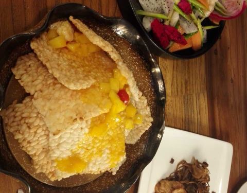 - 大爱店里的水果锅巴,每次必点,它的锅巴类似于『冻米胖』搭配新鲜的水果配料,酸甜入味,停不了口