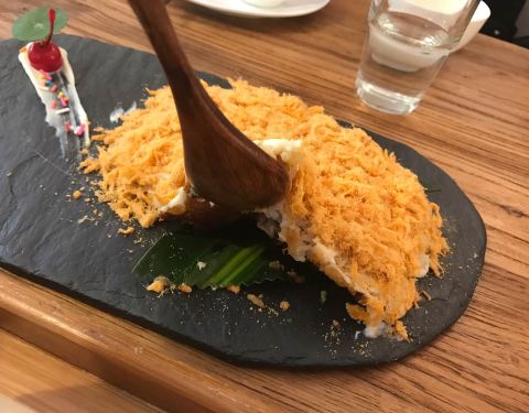 - 两个人点了四个招牌菜,量挺多的,私房鱼口感还不错,迷粽仔排比较普通,豆腐西施也不错,红糖糍粑特别好吃