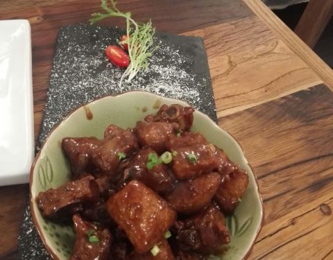 环境小清新,端午节点了应节的菜,迷粽仔排,味道不错,小粽子很香(有粽叶香,还有肉香),炒白空心菜也可以的,特别是干锅时素(有5-6种素菜烩制而成,用素菜荤烧)