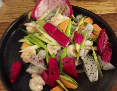 ...直很不顺心,但这家店菜肴摆盘精致,纯香入味,椒麻鸡香辣,咖喱虾酸甜不腻,特别是蓝莓山药十分软滑