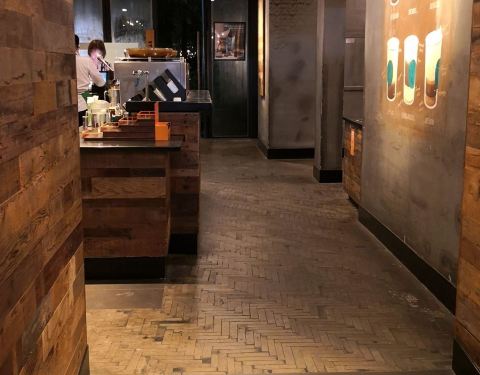 星巴克的口味现在已经称不上惊艳了,不过有些门店的选址和内部装潢还是会让人眼前一亮,比如西湖天地这家。装饰就显得很古朴,地面是用人字拼的花纹组成,逛西湖逛累了,坐下喝一杯,非常惬意!