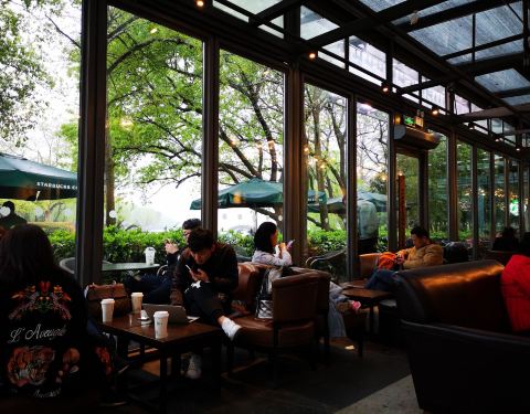 星巴克的口味现在已经称不上惊艳了,不过有些门店的选址和内部装潢还是会让人眼前一亮,比如西湖天地这家