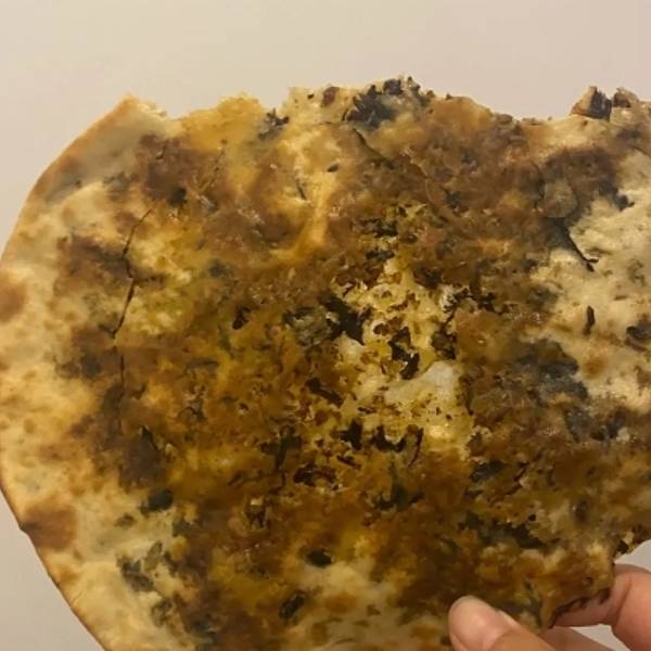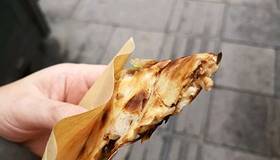 这家是烤箱烤的,前面那家店有碳烤的。点了辣胖子,微辣,饼脆脆的薄薄的,很好吃。