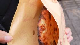 火山石烤肠感觉大家都是一...辣五花肉烧饼昨天吃了甜的今天尝试辣的,依旧很好吃。特别酥脆,完全可以接受的微辣,不需要喝水的那种。