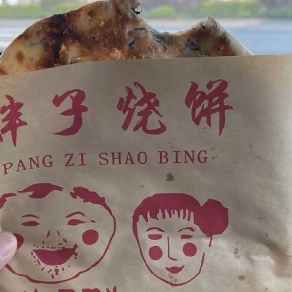 - 烧饼还是要吃现烤的。点了辣胖子,微辣,饼脆脆的薄薄的,很好吃。老板说前面路口还开了一家店