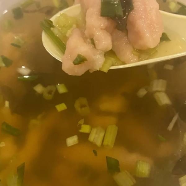 瘦肉丸虽然也裹了淀粉,已经很良心了。量大肉多,放了醋漂着葱芹菜的汤很开胃。