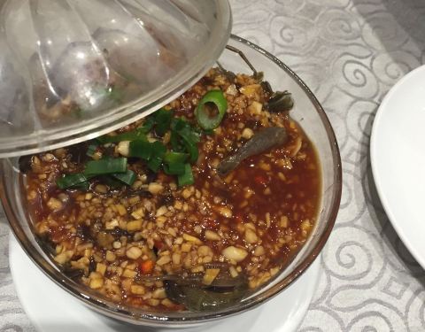 - 鳝煲是同事推荐的,我也喜欢,味道儿特别,豆结和咸肉和黄鳝,最爱咸肉。菜梗猪肝是看到推荐菜,味道浓