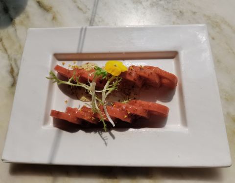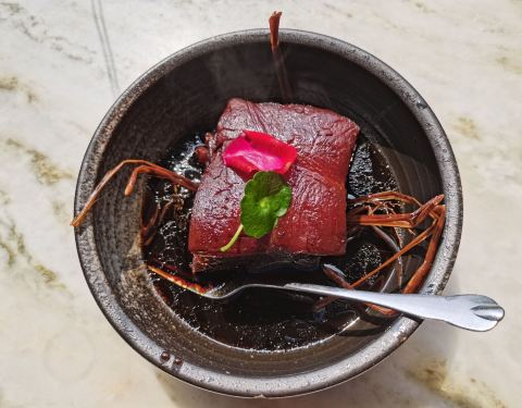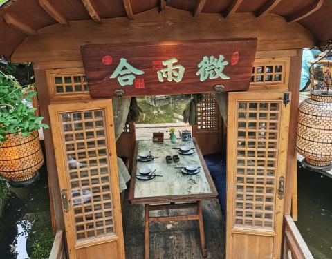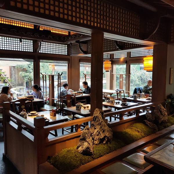 绿茶,一家江南气息浓厚的餐厅,铺满荷花的池塘、仿古的花船、中廊还有古筝表演,每一处细节都体现了店家的良苦用心。餐厅主营杭帮菜,招牌菜为绿茶烤肉,选用新鲜的生肉,炭火烤制,香气十足,轻咬下去能尝到肉汁的美味。