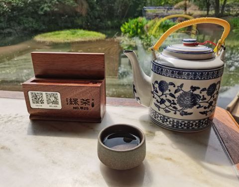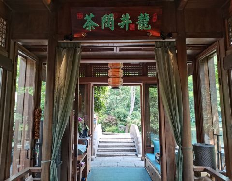 午餐来到了位于西湖畔龙井路的绿茶总店。这家开在茶园里的餐厅,曾经是一家青年旅舍,如今发展成为了全国性的连锁餐饮。室内一派江南庭院风格,还有歌女轻轻弹奏着江南曲调,让品尝佳肴也充满了诗情画意。店里主...