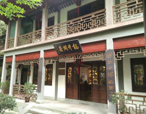 老龙井御茶园位于风景秀丽的西湖风景名胜区,座落于西湖龙井茶的发源地和核心茶区——龙井狮峰山麓。园内坐拥十八棵御茶、老龙井、宋广福院、宋梅、九溪源、胡公亭、辩才塔、狮峰山等历史人文资源;御茶楼、狮峰...老龙井御茶园位于风景秀丽的西湖风景名胜区,座落于西湖龙井茶的发源地和核心茶区——龙井狮峰山麓。园内坐拥十八棵御茶、老龙井、宋广福院、宋梅、九溪源、胡公亭、辩才塔、狮峰山等历史人文资源;御茶楼、狮峰楼、龙井居、九溪源等建筑轮廓错落有致,造型古朴典雅,与自然环境相得益彰,辉映在青山幽谷之间。公司集旅游、品茗、餐饮、会议和销售茶叶于一体,是浙江省、杭州市的重要接待中心和服务形象窗口。 - 口味有点重,但是环境和服务非常赞!门头比较明显。在老街的里面,打车可以直接开进去到门口走两步就进去了
