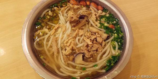 - 桂林米粉是特色,崇山米粉更是久负盛名,味道怎么说呢,可能是不太适合这种口味,味道淡,但偏辣、偏酸