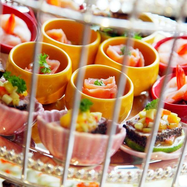 正宗的英式下午茶,通常是三层点心盘。包含了一个鸟笼点心塔、四份饮品、两份水果,相当划算