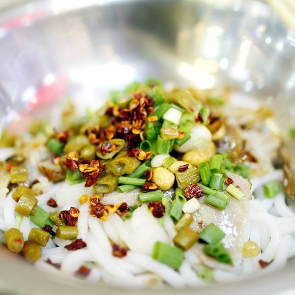 桂林米粉已经算是桂林的一张美食名片了,到桂林来不得不吃的最重要的美食。桂林的米粉店数不胜数,走在大街小巷里最多的便是一家家米粉店。神卤米粉店算是桂林人比较认可的一家老字号粉店,不过作为一个吃了十几年米粉的资深吃货来讲,我认为外地人第一次吃桂林米粉的话,是吃不出每一家米粉店的细微差别的。神卤米粉店就为于游客最为密集的正阳步行街上,非常适合游览时来体验一下正宗的桂林米粉,比起这几年宣传做得很大的明桂米粉来讲,味道更为被当地人接受吧。神卤米粉店开了几十年了,当初就是这样一个小铺子。几十年过去了,店铺位子和门面几乎还是一模一样,座位就随意的安置在一个通道里,在桂林的米粉店来说,环境真的不算好。遇到高峰期的时候,还需要站着吃等位。但是许多正宗的老味道,往往都不是以环境取胜的。神卤米粉店里有几种米粉可以选择,想要吃到最正宗的就点卤菜粉就好了。卤菜粉是桂林米粉的精华,看上去非常简单快捷,将冒好的米粉加上卤水、卤肉,再依据自己的口味加上黄豆、葱花、酸菜、辣椒,最后拌在一块儿就可以吃了。每家的米粉的不同之处,就是在于秘制的卤水里。关于卤水的制作,也是一项非常浩大的工程,一般要用几十种药材熬上数十个小时而成,火候分量都有讲究。所以看似快餐一样的米粉,实则做法并不简单。神卤米粉店取名中的“卤”,就指的是米粉的精华“卤水”。米粉店里还有其他口味的米粉,比如近些年特别火的柳州螺蛳粉。我觉得螺蛳粉不算正宗,不推荐在这里点螺蛳粉。实用贴士: 1、价格人均6元。 2、位置位于正阳步行街靠王城商厦一侧,不当街,位于婵娟饼店后巷里。 3、推荐桂林卤菜粉。