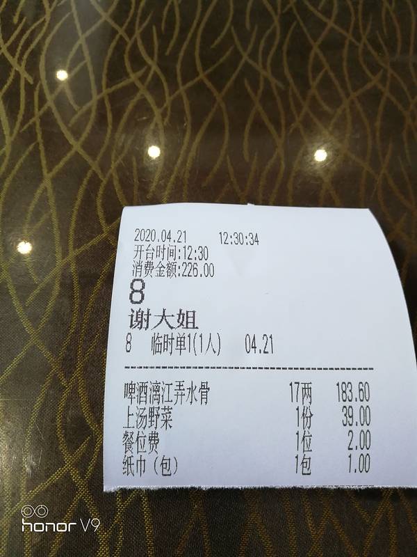 西街里面还有附近都有很多吃啤酒鱼的店,我们选择了攻略上推荐的谢大姐,在西街附近,店上的招牌标的是总店,装潢很是高档,害我们一开始都不敢进去。还好,价格其实还是很公道的,啤酒鱼有贵有便宜,按斤来算,38-88都有。因为我怕鱼骨鱼刺,服务员给我们推荐了48元/斤的毛骨鱼。选好哪种鱼后,要自己去挑,我们挑了条小的,也有二斤四两,另外我们还点了浦项芋头蒸排骨煲(小伙伴说浦项芋头是这边附近的特产),还有一青菜。显然,我们高估了自己的食量,除了尽力把啤酒鱼吃完,芋头几乎没动过。 说说大伙关心的,啤酒鱼还是挺好吃的,但我们都吃不出啤酒味,加分绝对是因为鱼,很鲜肉质很好,而且没有太多的骨刺,果然是“无骨鱼”(广东话“毛”跟“无”近音,嘻嘻),当然也有可能是小伙伴把没骨的都夹给我了。 这顿吃得很满足,价格180。