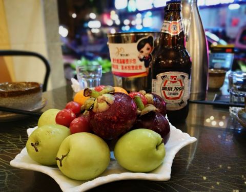 (烧汁小土豆) 这道菜是我最喜欢的一道菜,精爽的小土豆,相当的爽,配合这边特制的烧汁,口啤酒一块小土豆真的是很享受。 (花生米伴烧排骨) 摆盘就相当震撼的一道菜,因为特别的大,这边的肉也是相当大块的,每一块都比手机的长度要长,而且的话烧的比较的干,很也是很适合下啤酒的,宵夜必点的一道菜。 (炒粉) 这道菜有点像是潮州的果条,但是比起果条这边的更加的爽滑一点,是宵夜必不可少的主食。 (小田螺) 份量很多,性价比相当的高,小田螺在这边是比较的新鲜的,也是阳朔这边的特产。 (漓泉啤酒) 阳朔的本地啤酒,相当的好喝,有几个包装的,每一个包装的酒精浓度都有点不一样,推荐小胖瓶子的。 (小吃水果) 在这边的小吃跟水果都十分的新鲜,下酒很不错。 (服务) 谢大姐的服务还是一如既往的相当的好,天气比较寒冷,但是里面是比较温暖的,而且的话,上菜也十分的快捷,店铺的东西性价比都超级的高,无论是吃晚餐还是吃宵夜都很不错。