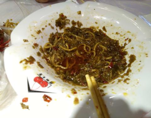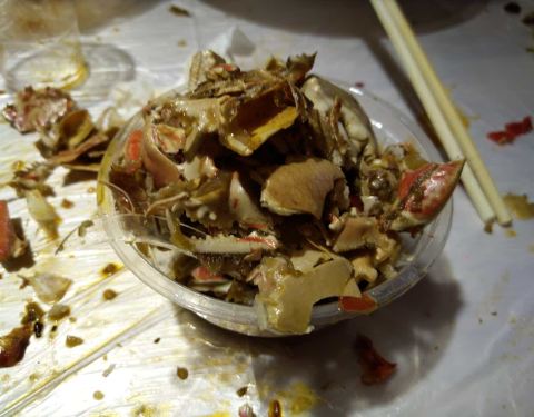 麻辣龙虾个头不大,所以肉嫩进味,而且够辣。蟹脚热干面味道还不错,上面有一层剁成块块的海蟹蟹脚,调料味道很好,辣中带甜,很特别。刀拍黄瓜不错,牛肉串分量不大,烤的不老,好吃。果子酒解暑,好喝。