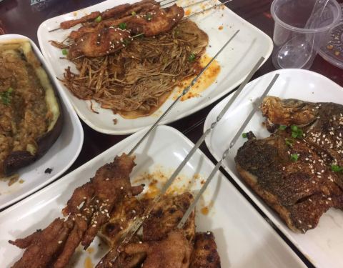 - 肉串,脆骨,鸡爪,花甲很好吃。这家烧烤店面不大,但是生意很好