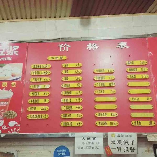 价目表上面写着面窝15元,我很惊奇的问了一句,面窝有几个?结果服务员瞟了我一眼说 谁告诉你15元了,上面不是写着1.5吗?我又看了一遍 我的天,那个小数点在5后面这还叫1.5吗???