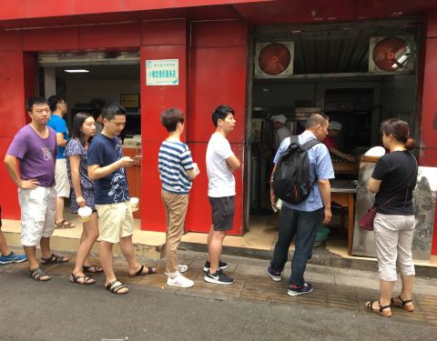 皮薄馅厚,油重,是他家烧卖的特色,糯米馅儿加瘦肉粒,吃上一口就感觉嘴巴油腻腻的,就是习惯这个味,他家总在站对,生意挺火爆的。