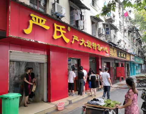严大姐特色小吃,在汉口利济北路附近。最有名的当属烧麦,六块钱可以买到四个烧麦,足够一个人过早呀!重油烧麦,是武汉独有的,特点是重油、胡椒味重、口感浓郁、个头大扎实,陪一碗免费的花红茶解腻。武汉的重油烧麦以严氏最为著名,像严老幺、德润福,都是响当当的,而严大姐亦是其中之一。