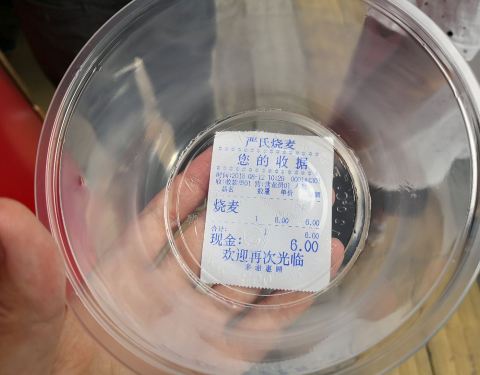 第一天在武汉的时候就看到严氏一直在排队,看着大家都在排队自己也凑上前去看了一眼,好像大家都是为了烧麦在排队。第二天的时候出门比较晚,看到队伍好像没有前一天那么长了就打算买一份吃吃看。6元一份,一份4个,价格不贵。 拿到手尝了一口味道还真不错,重油,皮薄,馅很实在,确实不错,吃两个感觉就能吃饱了。 除了买熟的,这边还有卖速冻的,自己回去加热吃就好了。 打包盒略简陋,4个烧麦一堆放就没有造型了,全部都挤压在了一起,吃的时候一个粘着一个。