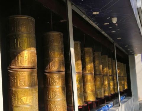 - 装修充满了浓郁的藏族风情,门口有一排转经筒,里面有个很大的金佛像,菜品也很丰富,藏族特色的牦牛...