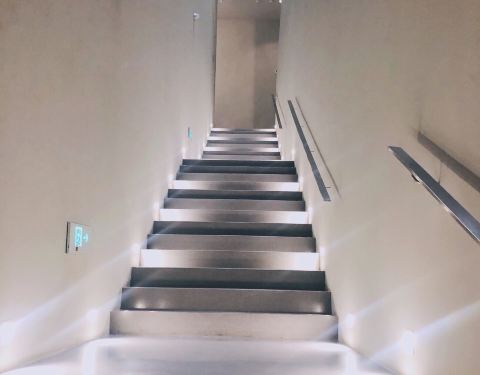 从外观看美术馆就像个四四方方的白色盒子,走进去之后比较惊艳,整个展馆立满了柱子,看上去纵横交错,非常具有几何的美感,透明的玻璃屋顶为美术馆引入自然采光。 大堂正中间是一个阅读区,有专业艺术类书籍售卖,但这个区域个人感觉在设计上略有点随便,但是瑕不掩瑜😁。 二楼有个宽敞的露台可以俯瞰江景。共三个展厅用于常设展和特色展,在地下一层还有多功能厅、智造展厅和一家叫La Chai酒库的餐厅。