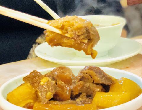 原汁牛腩伴牛筋 牛腩、牛筋酥烂入味,里面的萝卜也酥酥软软,配白饭或捞面都很不错。猪肝软嫩,没有腥气