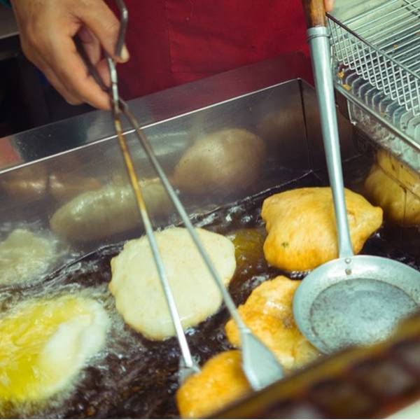 于是在户部巷选了一家。买了一个甜口的,拿在手里挺实诚的,头上沾了糖粉。吃着又香脆又柔软,还甜甜的,我觉得很好吃呢。