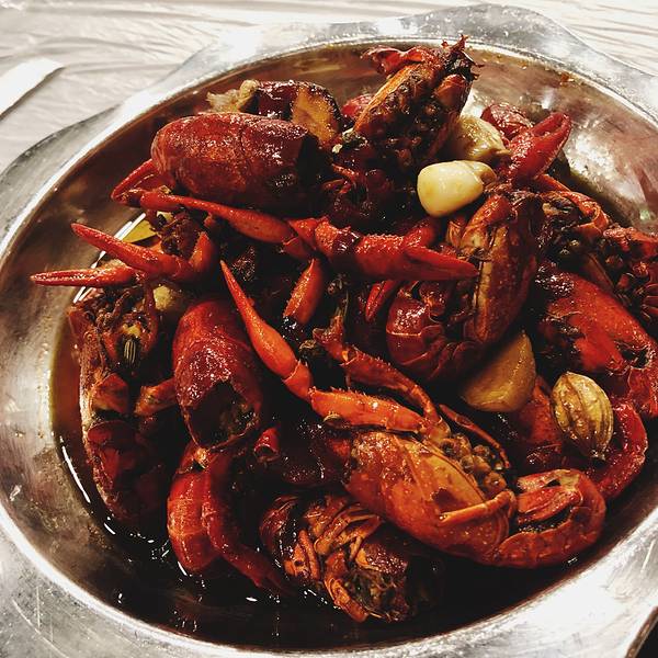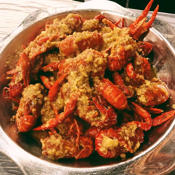 吉庆街意犹未尽,转战曹操专车师傅安利我们的油焖大虾。一份蒜蓉一份油焖。 油焖大虾比较符合油焖两字,味道很柔和,用很多蒜头爆香,入口有一点点回辣。蒜蓉蒜香很浓郁,吃多了就会腻的不行。总体上感觉湖北的...
