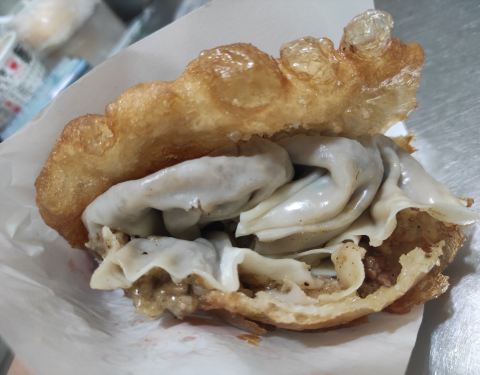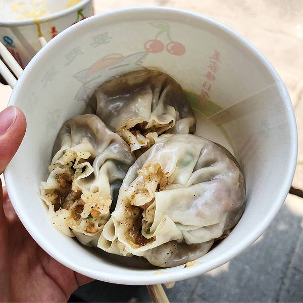 拿到油饼包烧卖我还是吓到了,我原本以为一个油饼里面包着一个烧卖,竟然特么包着4个烧卖!!!每吃一口都是满满的油腻味~相当的满足!烧卖出了糯米和肉,还有浓浓的胡椒味,不过吃多了确实有点腻,一人一个就已经差不多了。