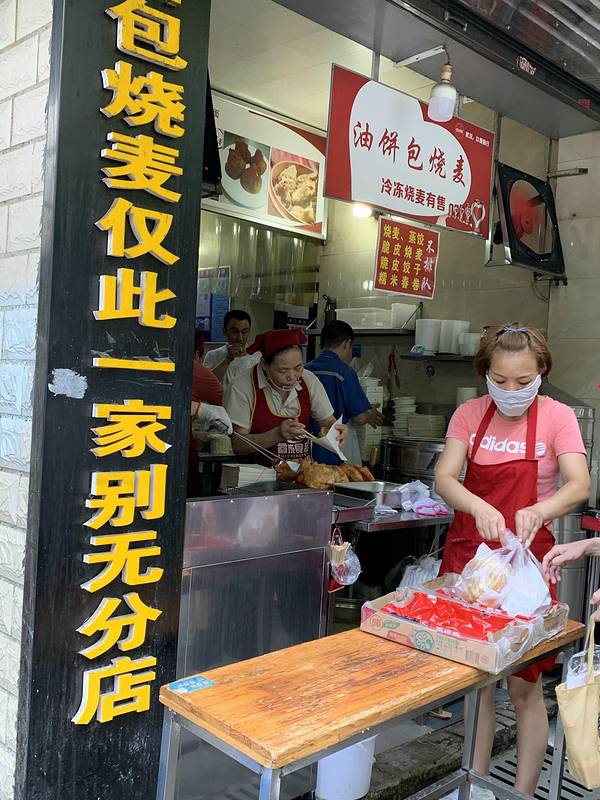 武汉人过早的花样也是多姿多彩,最经典的莫过于一碗热干面了。古法热干面,没那么多讲究,就面,芝麻酱!注意,是芝麻酱而不是花生酱哦!一碗热干面,从店主手里到你手里只需要平均三分钟,而武汉人过早又如这名字一样,有边走边吃的风格,于是,我不知道这店门口的护栏上放着的这碗没吃完的面是谁的呢…… 这是武汉当地特别有名的一家小吃店了!应该是谁人不知谁人不晓,武汉有一家吃油饼包烧卖的地方!乍一听名字我就震惊了,特么油饼还能包着烧卖吃!这是谁想出来的点子!
