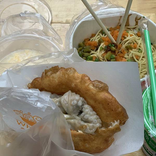 买票和热干面的队伍控制的很合理,大概在15人左右。两人同行的话,一个人可以排油饼包烧卖,另一个人可以先去买票取热干面和其他小食,排队的时间就可以将这些美食全部消灭。