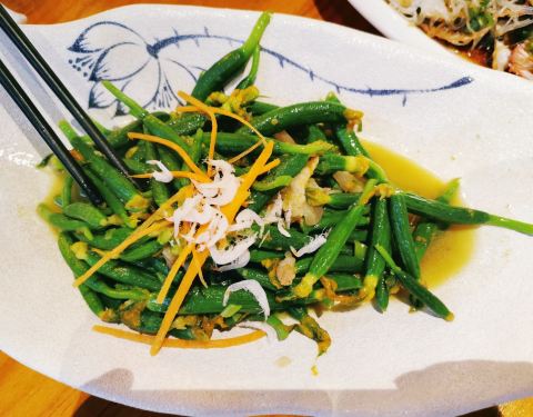之前签到并上传视频时已经“验明正身”了,还有另一家分店位于通益路的创意园内,接盘了之前的筒骨砂锅店,装修基本没有很大变动,节省了很大一部分费用,让利于民!而且最重要的是越少的装修,越少的甲醛,哈哈~~~~~~~ 进门便是明档点菜区,正中间是海鲜类(鱼、虾、蟹、螺品种齐全),往右是蔬菜和冷菜间,专人协助点餐及协助配餐、烧法参考等,等位期间正好可以打发时间。 安排在二楼座位,空间很宽敞,完全不会有压抑感,上菜也很快,厨房很给力~~~~~~ 椒盐豆腐鱼(38):豆腐鱼最经典的做法,面浆薄薄的裹一层后炸制金黄,以洋葱、青红椒煸炒着色,百吃不腻。 芹菜炒鱼饼(48):既然是打着“浙C”的抬头,自然要试一下温州特色的手工鱼饼~~~~~用芹菜胡萝卜做搭配,互补了蔬菜的清香和鱼饼的鲜嫩口感。 葱油蛏子(48):蛏子很新鲜,个头饱满,连续吃了几个都没有泥沙,不过量有点少喽~~~~~~ 家烧鲜紫菜(48):活久见,见到了鲜紫菜~~~~~普通的家烧做法,就是放了点肉末和胡萝卜,没有想象中的海腥味,汤头竟然是紫红色的,类似红苋菜炒过以后的颜色~~~~~~ 梅干菜烧泥令(48):“泥令”是一种小海鲜,被建议做成梅干菜烧法,鱼刺很多,味道也有点奇怪,个人不太能接受啦~~~~~~ 总体还不错,比较家常口味的餐厅,希望能一直保持食材的新鲜度,在这片餐饮空白区打下稳固江山,嘿嘿。