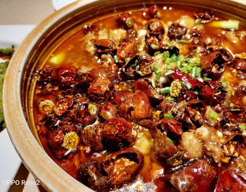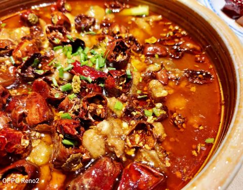 - 牛蛙的数量一般,肉质很入味,算是比较嫩的,两个人的分量绰绰有余,打底菜太多了没有吃完