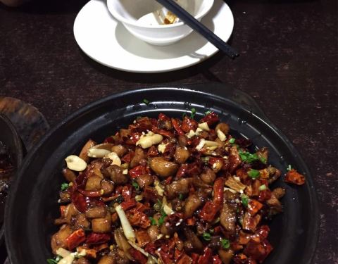 地理位置太好,人多有时招呼不过来。 【招牌红烧肉】应该是在油锅里过了一道,肥而不腻,甜度适中! 【会跳舞的茄子】茄子本来就吃油,有点油腻,而且有点偏甜 【黄金豆腐】这个豆腐很好吃,外酥里嫩的!不过分量有点少! 【石锅牛蛙煲】上来时煲内还在噗哧噗哧的,牛蛙个大,肉多,肉质也很鲜嫩,打底是黄瓜,好吃。