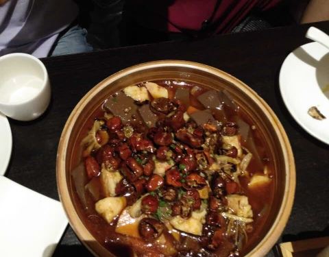 地理位置太好,人多有时招呼不过来。 【招牌红烧肉】应该是在油锅里过了一道,肥而不腻,甜度适中! 【会跳舞的茄子】茄子本来就吃油,有点油腻,而且有点偏甜 【黄金豆腐】这个豆腐很好吃,外酥里嫩的!不过分量...地理位置太好,人多有时招呼不过来。 【招牌红烧肉】应该是在油锅里过了一道,肥而不腻,甜度适中! 【会跳舞的茄子】茄子本来就吃油,有点油腻,而且有点偏甜 【黄金豆腐】这个豆腐很好吃,外酥里嫩的!不过分量有点少! 【石锅牛蛙煲】上来时煲内还在噗哧噗哧的,牛蛙个大,肉多,肉质也很鲜嫩,打底是黄瓜,好吃。