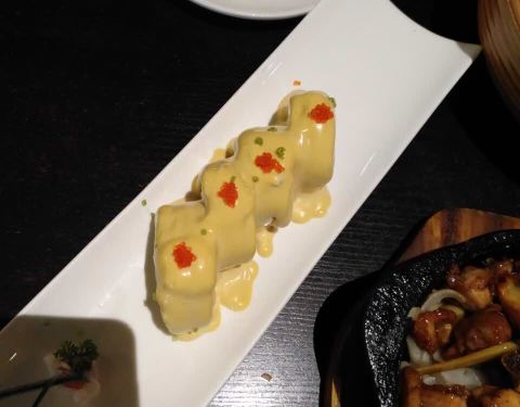 装盘太精致了,盛盘在一个底部有火焰的蜡烛上面,边煮边吃,外表一层厚厚的芝士,精选的马苏里芝士,诱人食欲,相信没有几人能抵得住芝士的浓郁香味,甜而不腻,经过厨师特调,和天然野菌及肉酯嫩豆腐,在高温的促使下,相遇在了一起,彼此不可分开,嫩嫩的豆腐,柔软细滑,中西合璧,完美搭配。