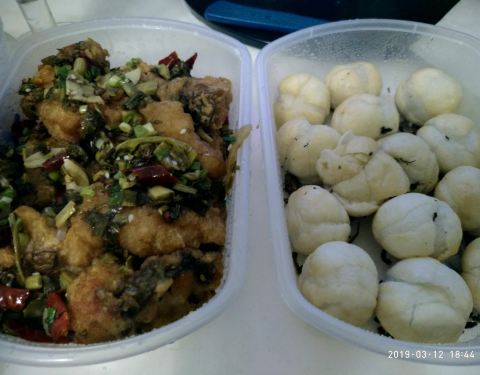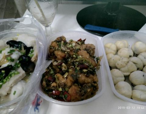 熊胖子酒楼在蔡家田开了很多年了,一直生意都很火爆,主要是他家菜式多,价格实惠,分量足的缘故。这次点了他家外卖,三道菜,黄陂三鲜,炸汤圆和糍粑鱼,味道还不错,分量也可以。