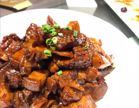 - 这家主打杭帮菜,龙井虾仁确实不错,新鲜而且很嫩。笋子烧肉不错。凉菜代表,素鹅没烤麸那么甜,可以尝一下