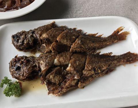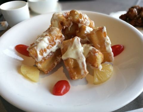 既然是酒楼,门面也是看上去比较高大上的。我们去的时候人还挺多,大厅宽敞明亮,也都是圆形餐桌。 蒜香排骨 招牌菜之一,可以按个数点,蒜味不是很浓,油炸过的,个人感觉味道不错.还有其他.....