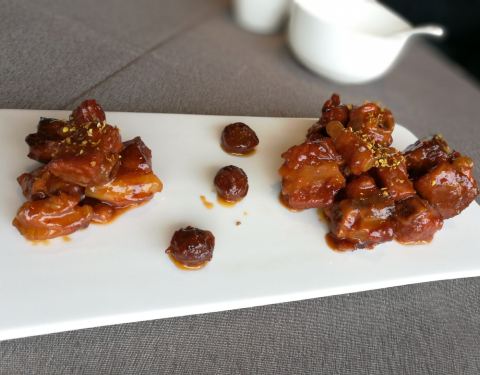 这家店位置在万豪国际一楼,对面就是花园道,很好找,灰色的装修主调很高雅。话梅小排,烧制的很入味,酸酸甜甜 很开胃,又不会太甜腻